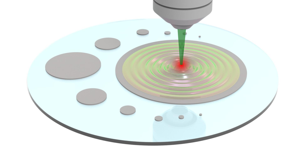 To test the idea, Lee and colleagues measured heat dissipation in a thin disk-shaped film of the metal titanium sitting on a thicker slab of insulating silicon dioxide (the substrate). They used a laser to induce local heating of the film and a method called thermoreflectance to monitor how the heat was dissipated. The heating spontaneously produced SPPs, both on the top surface (exposed to air) and the bottom surface (in contact with the substrate).